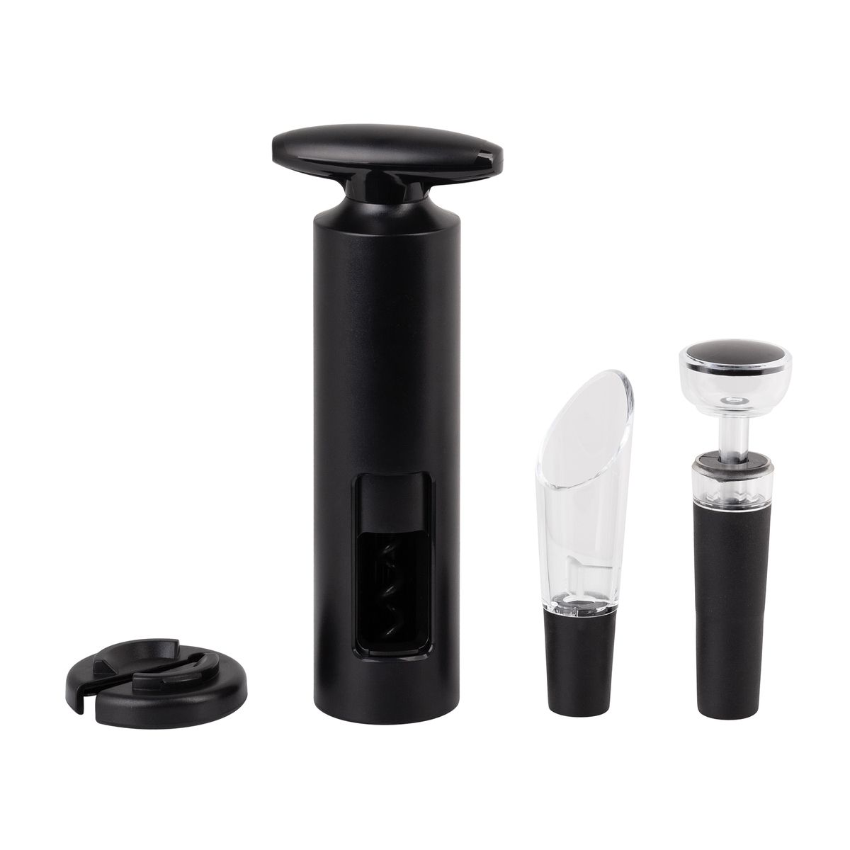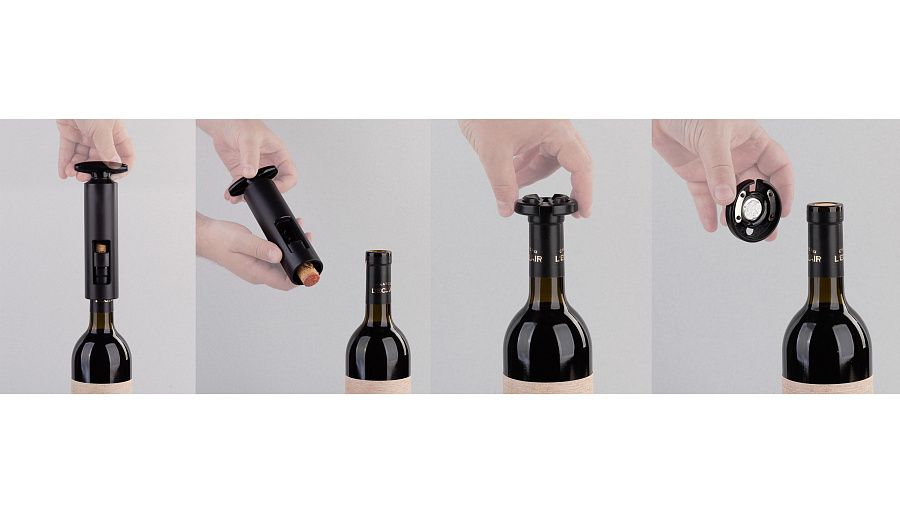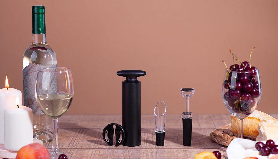 Набор из четырех аксессуаров для вина позволяет подготовить благородный напиток и в полной мере насладиться его вкусом.