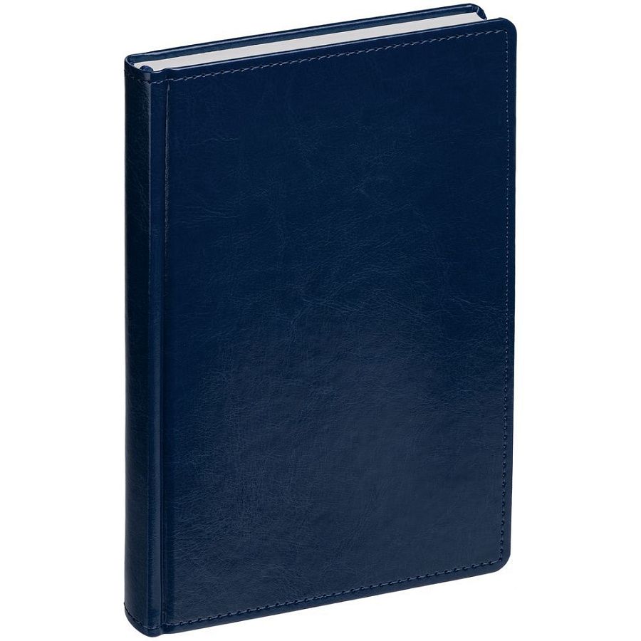 Ежедневник с твердой обложкой без поролона, выполнен из материала Nebraska, синий НН, дополнен ляссе и капталом в цвет обложки.