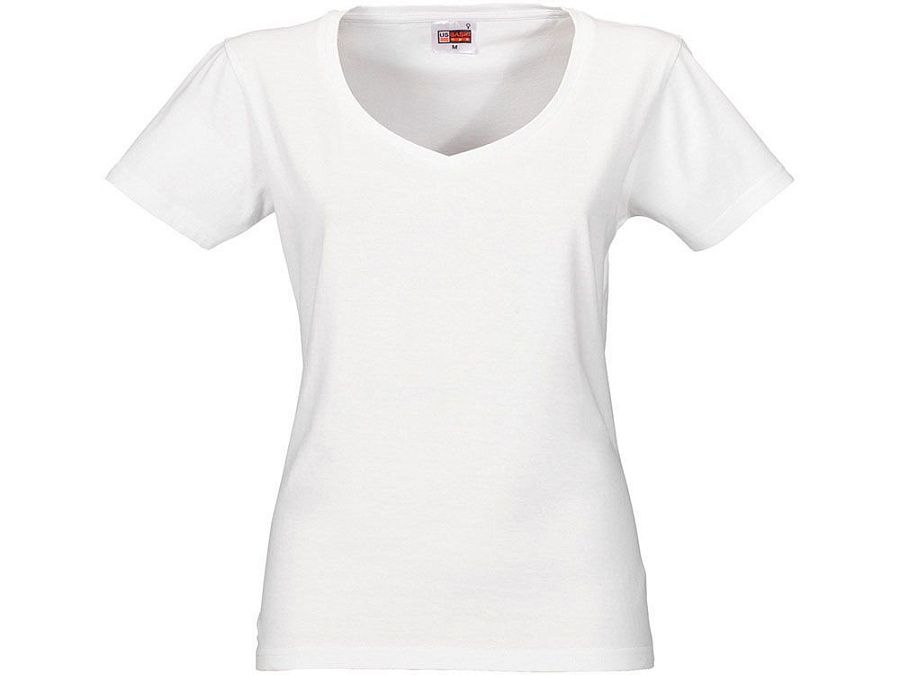 Женская футболка из натурального хлопка с элегантным V-образным вырезом. Материал отлично подходит для нанесения рекламной информации. Натуральная ткань не вызывает раздражения кожи.