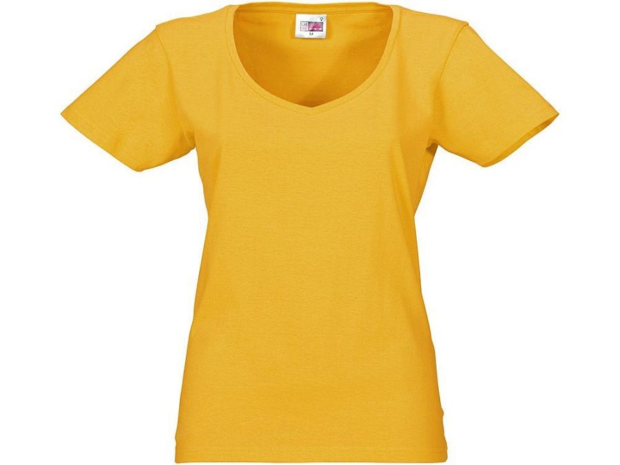 Женская футболка из натурального хлопка с элегантным V-образным вырезом. Материал отлично подходит для нанесения рекламной информации. Натуральная ткань не вызывает раздражения кожи.
