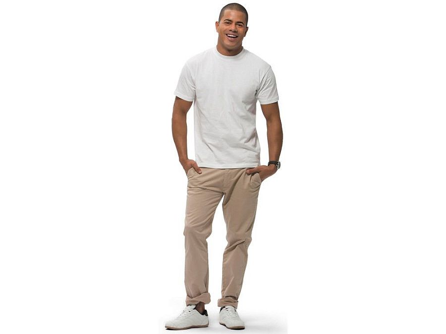 Футболка с короткими рукавами Ace. Мужская модель свободной посадки. Без боковых швов. Резинка с эластаном и двойной строчкой на воротнике. Лента от плеча к плечу. Однослойная джерси, 100% хлопок. 150 г/м².