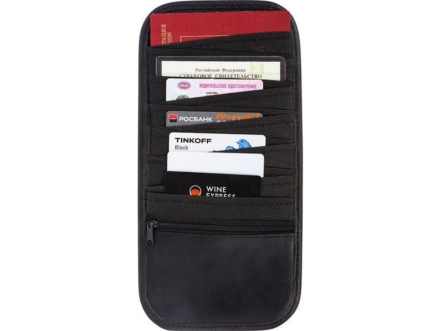 Универсальный органайзер на козырек автомобиля. Крепится на эластичные крепления. Имеет 12 карманов и отделение на молнии для расположения банковских карт, документов и других мелочей. Органайзер легкий по весу, не мешает обзору водителя. 000000263