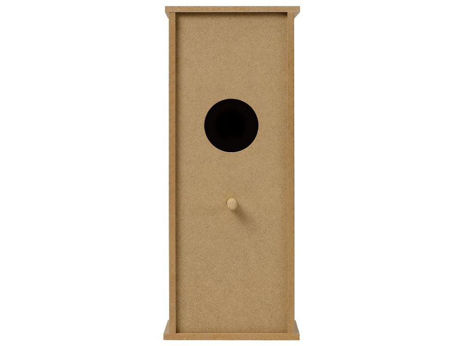 Сборный скворечник из МДФ поставляется в виде отдельных деталей в крафтовой упаковке. Собрать домик для птиц очень просто: понятная инструкция объяснит, как соединять детали, а приложенные винтики и жердочка-колышек помогут их скрепить.