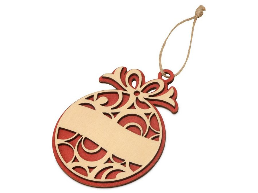 Оригинальное елочное украшение в виде ажурного новогоднего шара выполнено из березовой фанеры и тонировано в красный цвет. Поле для нанесения – широкая лента, обхватывающая шар, на которой ваши пожелания или логотип будут смотреться как нельзя уместно, органично вписываясь в облик изделия.
