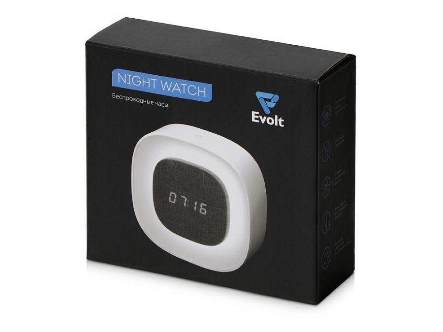 Беспроводные часы с управляемой яркостью подсветки. Для включения подсветки просто прикоснитесь к сенсорной кнопке, расположенной на верхней части «Night Watch» — очень удобно, если это происходит в темноте: достаточно попасть ладонью по центру верхней грани. Длительным нажатием кнопки регулируется яркость подсветки.