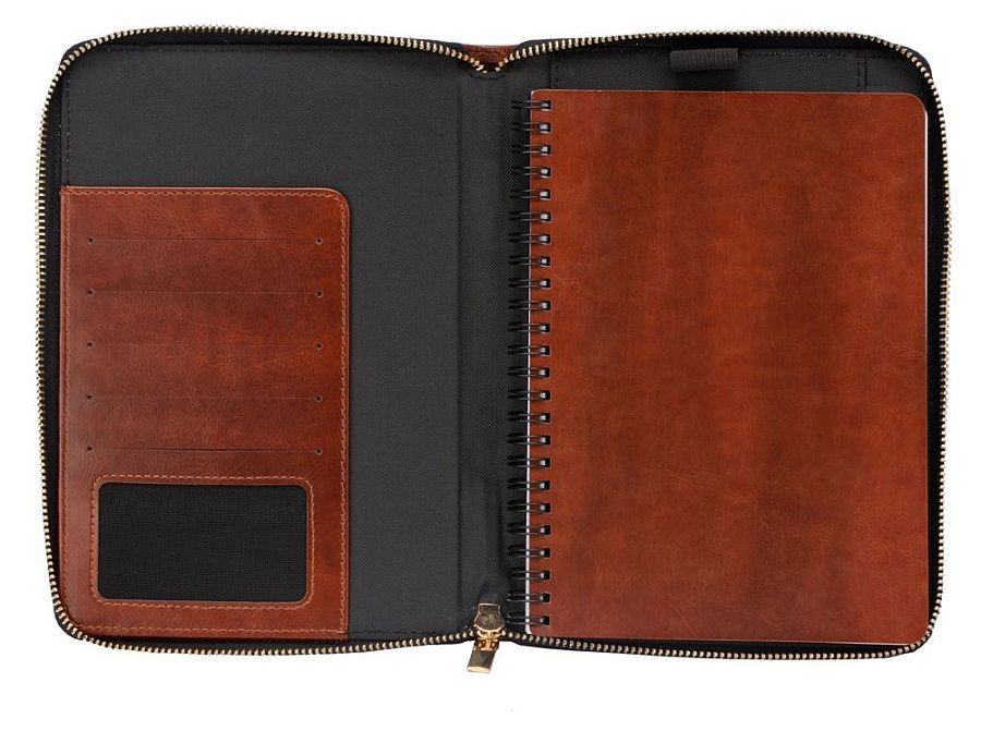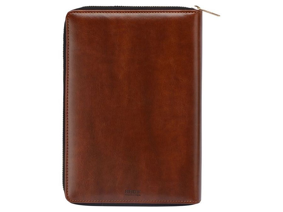 Блокнот снабжен 5 отделениями для карт и RFID защитой, которая охраняет вашу личную и финансовую информацию от мошенников. Внутри блокнота есть петля для ручки в тон (ручка в комплект не входит).