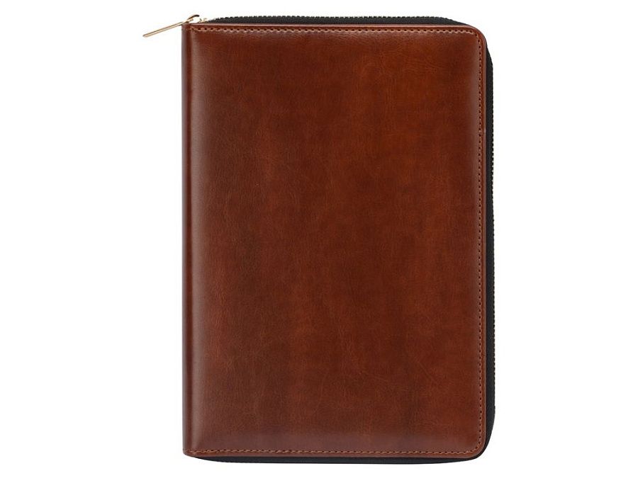 Бизнес блокнот Fabrizio состоит из пенала на молнии выполненного из искусственной кожи, и сменной тетради на 80 листов на кольцах с перфорированными линованными листами белого цвета.