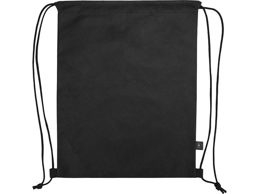 Рюкзак-мешок изготовлен из переработанного пластика. Затягивается с помощью двух боковых шнурков.