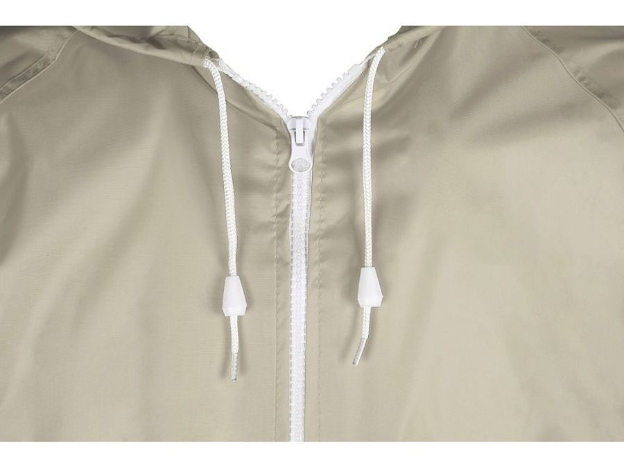 Рукав реглан обеспечивает комфортную посадку, не сковывает движения, что позволяет использовать дождевик для активного отдыха, а резинка по низу помогает сохранить тепло, препятствуя попаданию влаги и защищая от ветра.