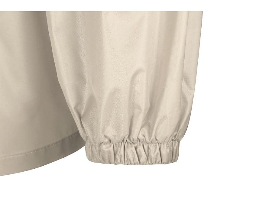 Рукав реглан обеспечивает комфортную посадку, не сковывает движения, что позволяет использовать дождевик для активного отдыха, а резинка по низу помогает сохранить тепло, препятствуя попаданию влаги и защищая от ветра.