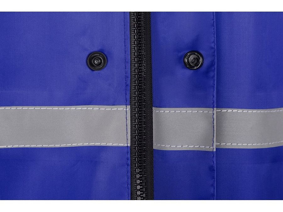 Светоотражающая тесьма на груди и спине делает человека в плаще заметным даже в темное время суток. Вместительные накладные карманы защищены сверху клапаном.