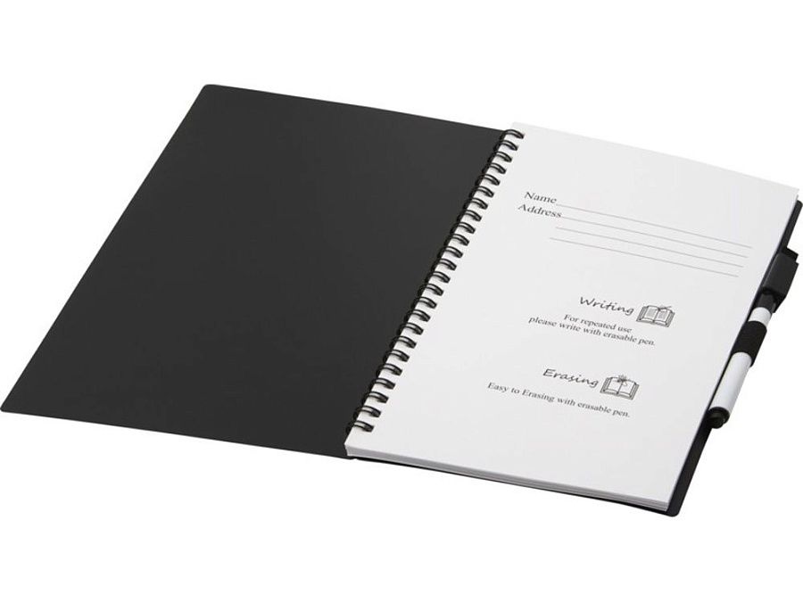 Эко-блокнот — на его производство используется меньше бумаги, что является заботой об окружающей среде. Заметки, рисунки или результаты мозгового штурма на страницах можно стереть с помощью ластика на маркере и снова использовать страницы. Их также можно чистить обычной тканью (не входит в комплект). 40 листов: половина с пунктирной разметкой, вторая половина — пустые. Черный маркер для записей.