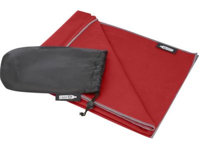 Это спортивное полотенце очень хорошо впитывает влагу, легкое, быстро сохнет. Кроме того, ткань прочная и чрезвычайно мягкая. Когда полотенце сложено и закреплено резинкой, оно уменьшается до небольшого размера, поэтому его удобно брать с собой в тренажерный зал, бассейн, на пешую прогулку или в поход. Полотенце имеет размер 130 x 80 см и изготовлено из переработанного РЕТ-полиамида плотностью 200 г/м2, его можно стирать в стиральной машине при 40 °C. Поставляется с сумкой для хранения (20 x 8,5 см) из переработанного РЕТ-пластика, на которой достаточно места для нанесения логотипа.