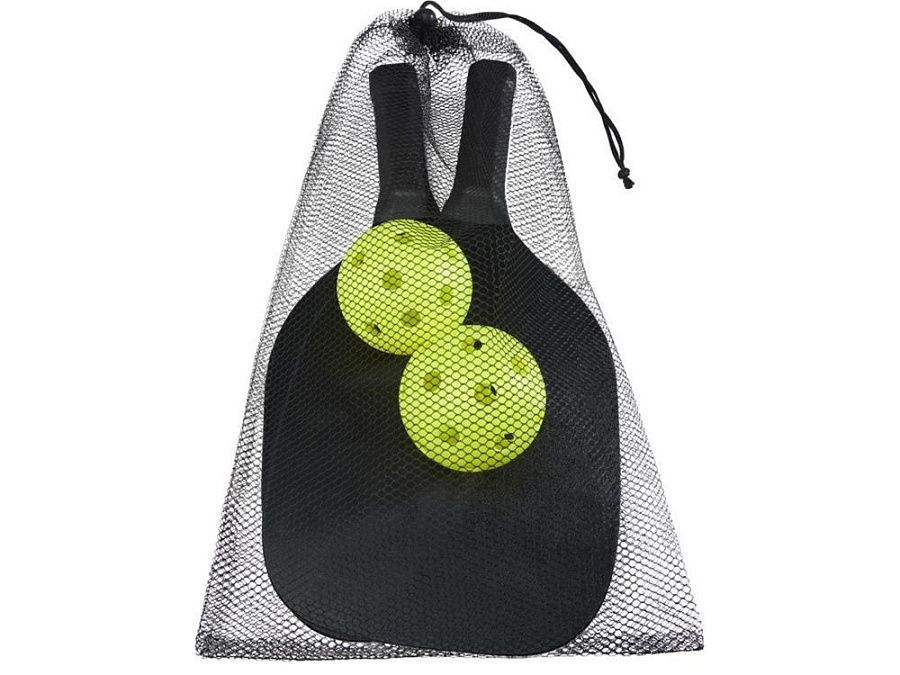 С этим комплектом ракеток из буковой древесины вы получите массу удовольствия во время игры на пляже, в парке или саду. Ракетки размером 40 x 20 x 0,7 см окрашены в черный цвет и имеют много места для печати логотипа. Ручки обернуты лентой из ПУ, обеспечивающей максимальное сцепление во время интенсивной игры. В комплекте есть 2 мячика из РР-материала, он упакован в сетчатый чехол для хранения из полиэстера размером 45 x 26 см.