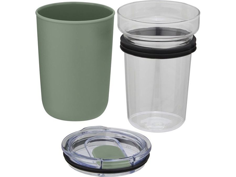 Стеклянная кружка в защитном чехле из переработанного пластика. Кружка изготовлена из прочного 100% боросиликатного стекла, которое не содержит вредных химических веществ и сохраняет свежесть напитка. Не содержит БФА, испытана и одобрена в соответствии с немецким законодательством о безопасности пищевых продуктов (LFGB). Проверена на содержание фталатов и одобрена для использования в соответствии с правилами REACH. Кружка подходит для большинства кофе-машин. Объем 420 мл. Сняв пластиковый чехол, кружку можно мыть в посудомоечной машине. В подарочной коробке из переработанного картона.
