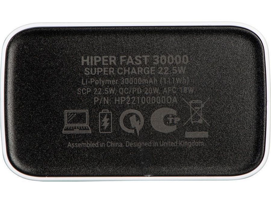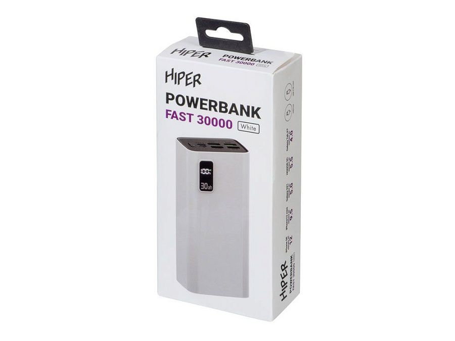 Портативный внешний аккумулятор HIPER FAST 30000 емкостью 30000 мАч (111Втч) оснащён двунаправленным портом USB-C, Micro-USB входом для зарядки, с поддержкой быстрой зарядки аккумулятора QC и PD, 4xUSB-A выходами, максимальный выходной ток 5А, максимальная мощность 22,5 Вт, поддержка быстрой зарядки стандарта QC 18 Вт, поддержка быстрой зарядки стандарта PD 18 Вт, стильный дизайн.