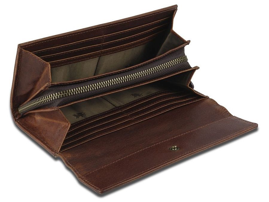 Кошелек изготовлен вручную из натуральной кожи буйвола, обеспечивает безопасное хранение купюр, кредитных карт и монет.