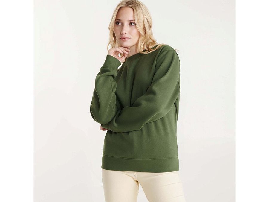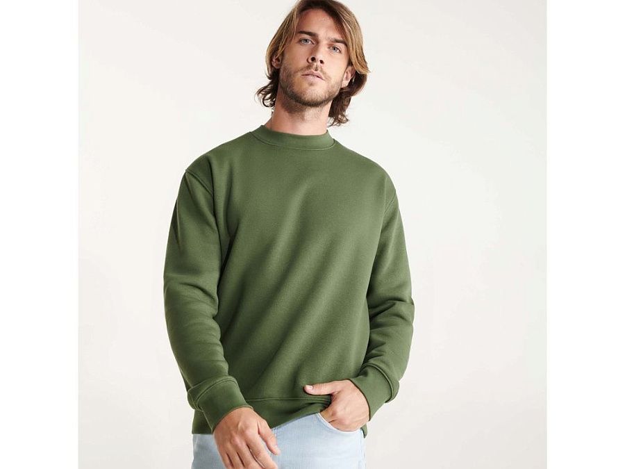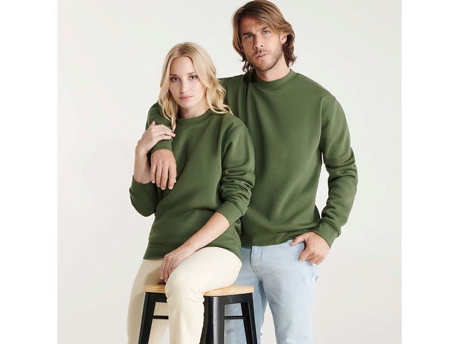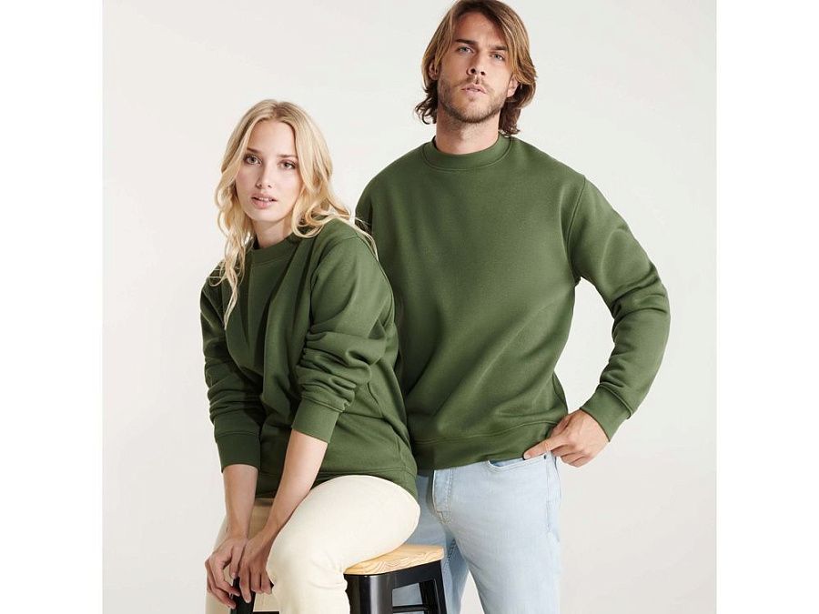 Классическая толстовка свитшот с эластичным рибом 1x1 на воротнике, манжетах и низу изделия. Шов горловины укреплен изнутри тесьмой.