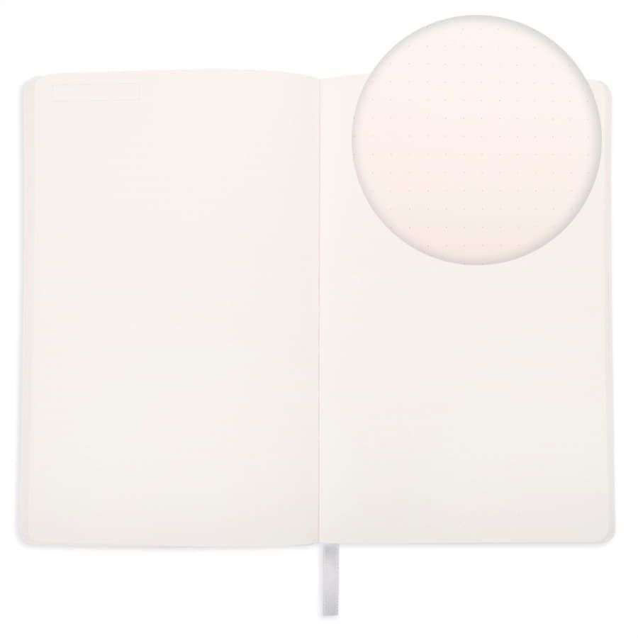 Блокнот с мягкой термоактивной обложкой и популярной комбинацией цветовТермоактивный PU материал VelvetЦвет обложки белыйЦвет форзаца, близкий к Pantone Red 2035UВнутренний блок 256 страниц в точкуИдеально скругленные углы блокаПерфорированные 8 последних листов Кремовая FSC бумага 70 г м2Ляссе в тон обложкиИндивидуальная упаковка: фирменный сливбокс thINKme