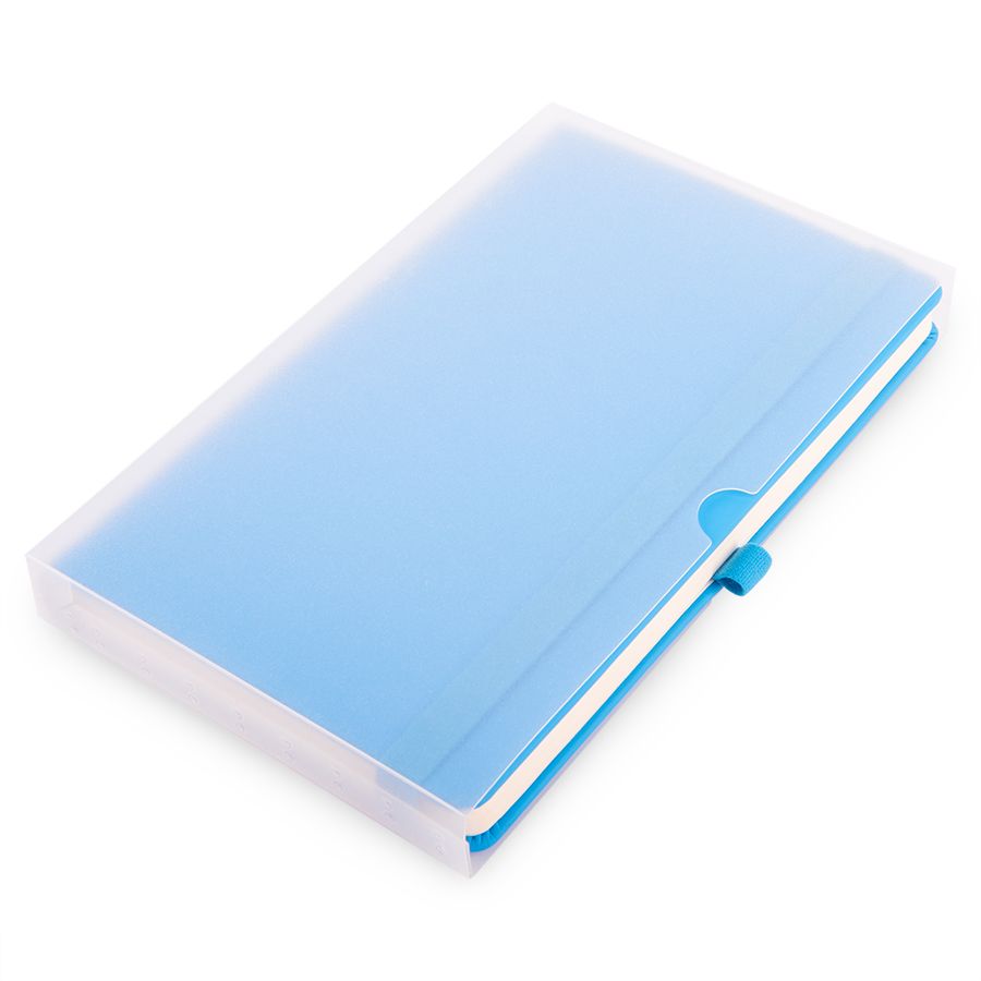 Самый популярный блокнот в твердой обложке, с эластичной резинкой, пенхолдером и ляссе в тон.Термоактивный классический PU материал Silk PlusЦвет обложки, близкий к Pantone 7688CВнутренний блок 256 страниц в линейкуИдеально скругленные углы блокаПерфорированные 8 последних листовКремовая FSC бумага 70г м2Карман для мелочейИндивидуальная упаковка: прозрачный сливбокс