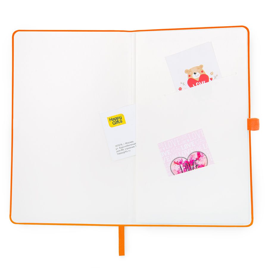 Самый популярный блокнот в твердой обложке, с эластичной резинкой, пенхолдером и ляссе в тон.Термоактивный классический PU материал Silk PlusЦвет обложки, близкий к Pantone 158CВнутренний блок 256 страниц в линейкуИдеально скругленные углы блокаПерфорированные 8 последних листовКремовая FSC бумага 70г м2Карман для мелочейИндивидуальная упаковка: прозрачный сливбокс