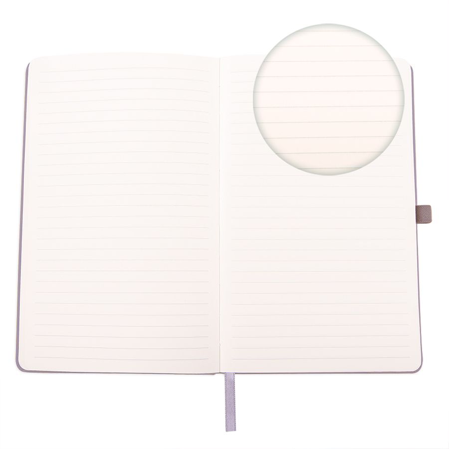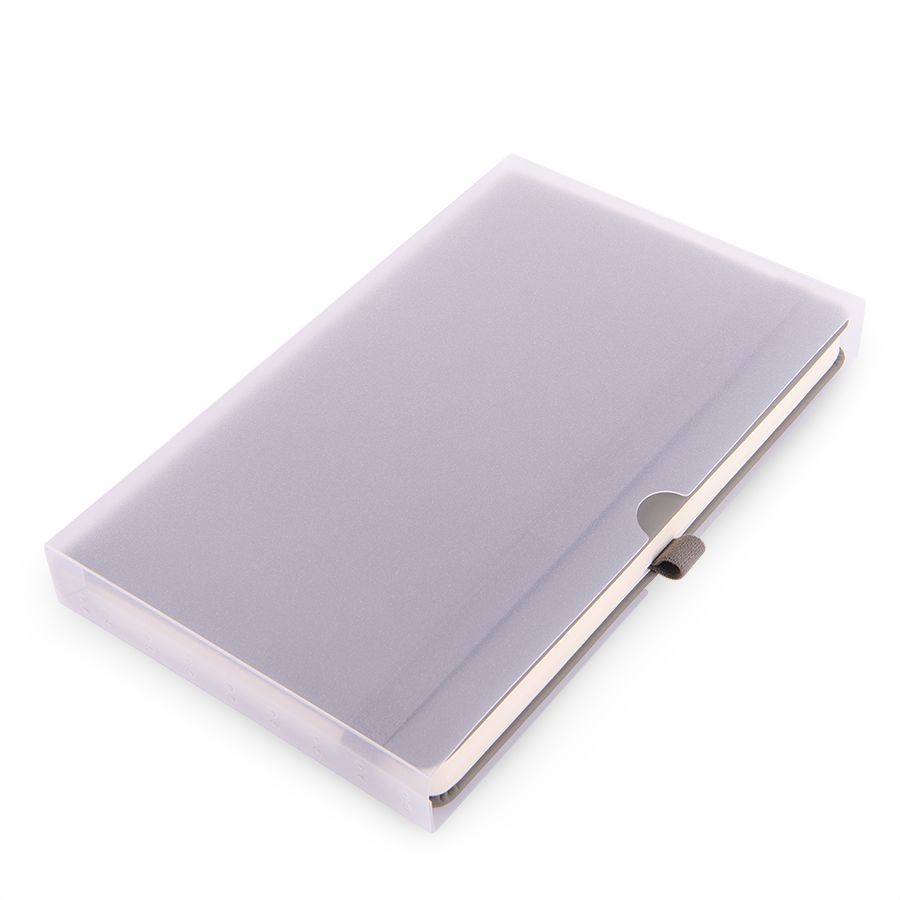 Самый популярный блокнот в твердой обложке, с эластичной резинкой, пенхолдером и ляссе в тон.Термоактивный классический PU материал Silk PlusЦвет обложки, близкий к Pantone 423CВнутренний блок 256 страниц в линейкуИдеально скругленные углы блокаПерфорированные 8 последних листовКремовая FSC бумага 70г м2Карман для мелочейИндивидуальная упаковка: прозрачный сливбокс