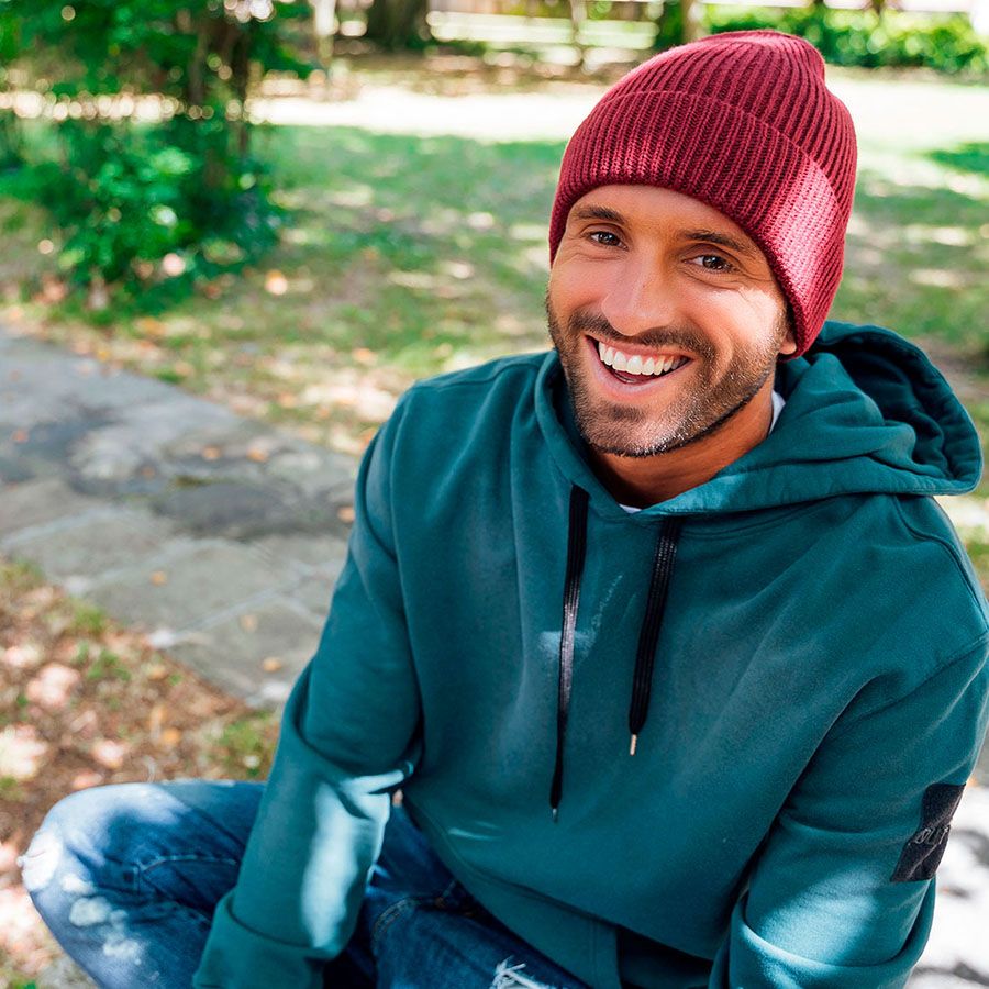 Облегченная однослойная вязаная фактурная шапка ANDYБлагодаря одному слою вязки шапка хорошо держит формуОтворот даёт возможность регулировать посадкуЭкологичная: 50% переработанного полиэстера 50% акрилаЦвет близкий к Pantone 7428-C