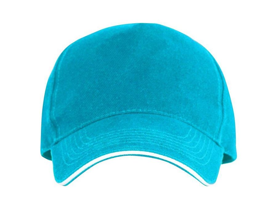 Бейсболка из 5 панелей с контрастным сэндвичем. Четыре вышитых вентиляционных люверса. Застежка на липучку.