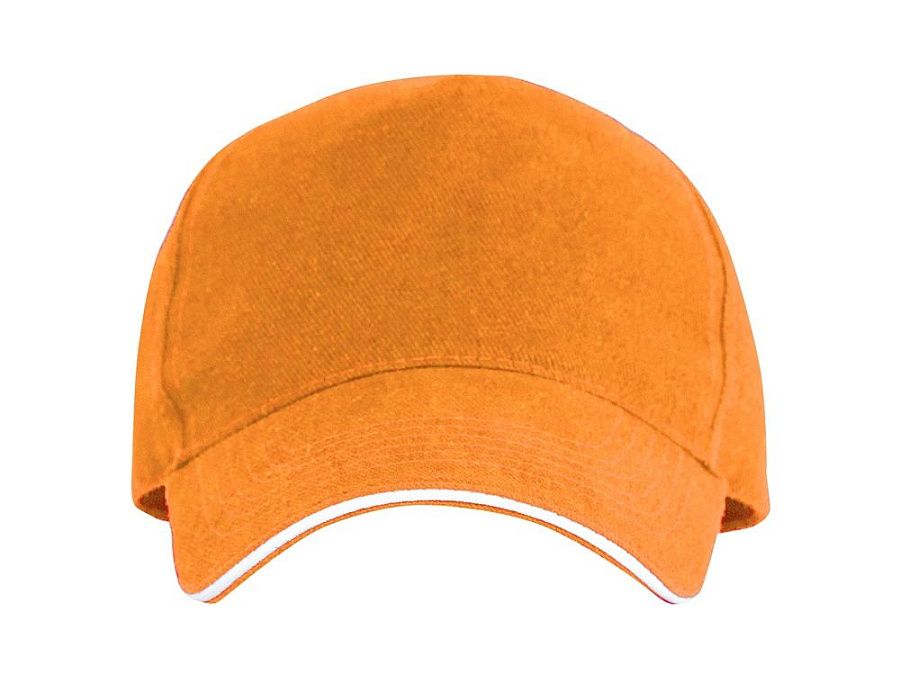 Бейсболка из 5 панелей с контрастным сэндвичем. Четыре вышитых вентиляционных люверса. Застежка на липучку.