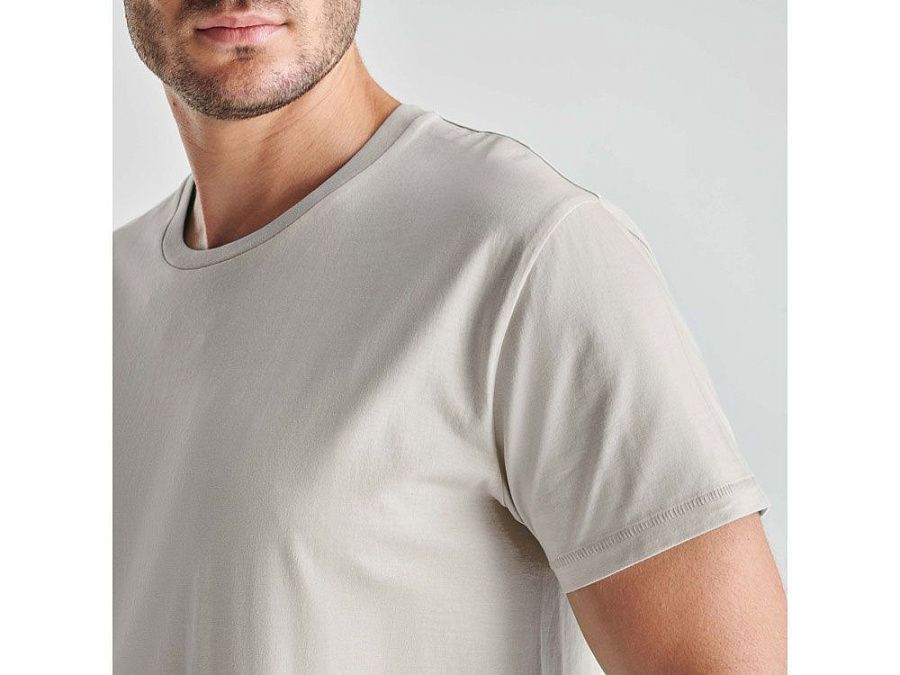 Бесшовная мужская футболка с коротким рукавом из органического хлопка. Круглый вырез горловины обработан рибом 1х1. Декоративные отделочные швы по низу изделия и рукава.