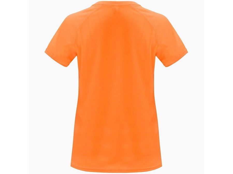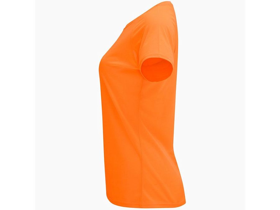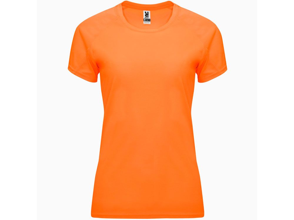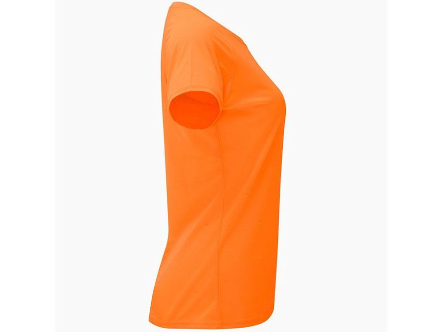 Спортивная футболка с коротким рукавом реглан для женщин. Круглый вырез горловины с отделкой плоским швом. Рукав сложного кроя для обеспечения дополнительного удобства при занятиях спортом. Отделка плоским швом с застилом по пройме и рукавам.