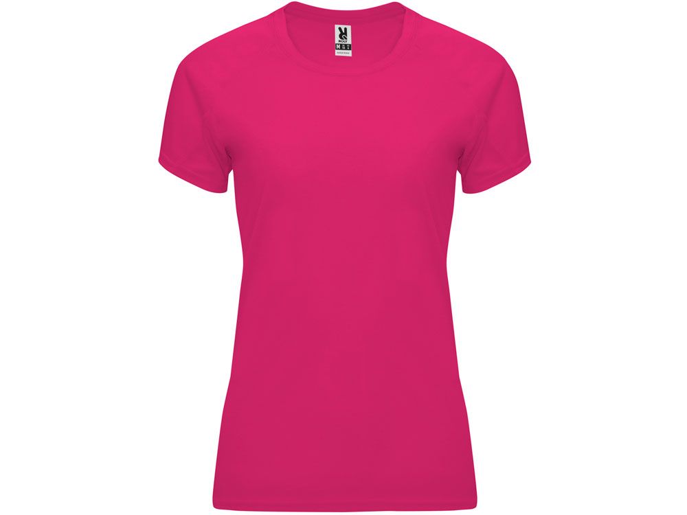 Спортивная футболка с коротким рукавом реглан для женщин. Круглый вырез горловины с отделкой плоским швом. Рукав сложного кроя для обеспечения дополнительного удобства при занятиях спортом. Отделка плоским швом с застилом по пройме и рукавам.
