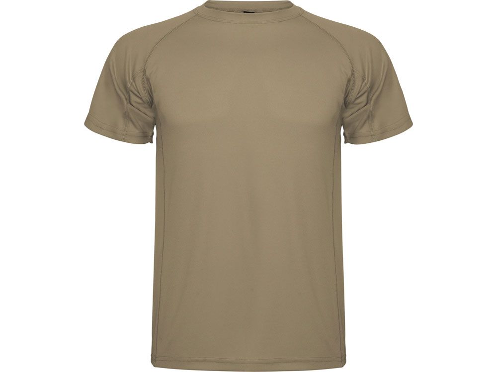 Спортивная мужская футболка с коротким рукавом реглан. Круглый вырез горловины и боковая вставка с отстрочкой плоским швом.