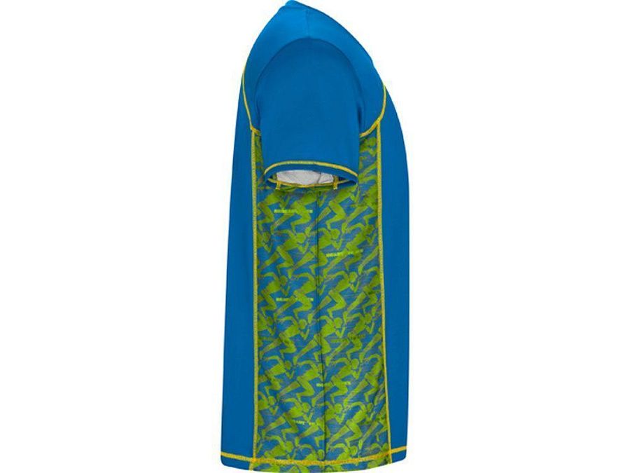 Спортивная футболка с коротким рукавом и принтованными вставками. Контрастные отстрочки плоским швом, светоотражающие элементы на полочке и спинке. Эко лейбл на рукаве.