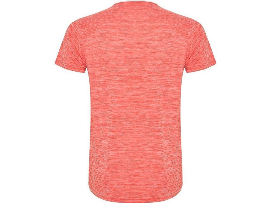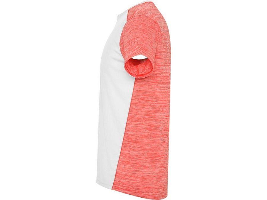 Футболка с коротким рукавом из технологического полотна. Круглый вырез горловины. Комбинация двух полиэстеровых полотен. Основное полотно на полочке со структурой, дополнительное полотно на спинке, рукавах и плечах с меланжевым эффектом. Задняя часть немного длиннее. Легко сохнущее дышащее полотно.