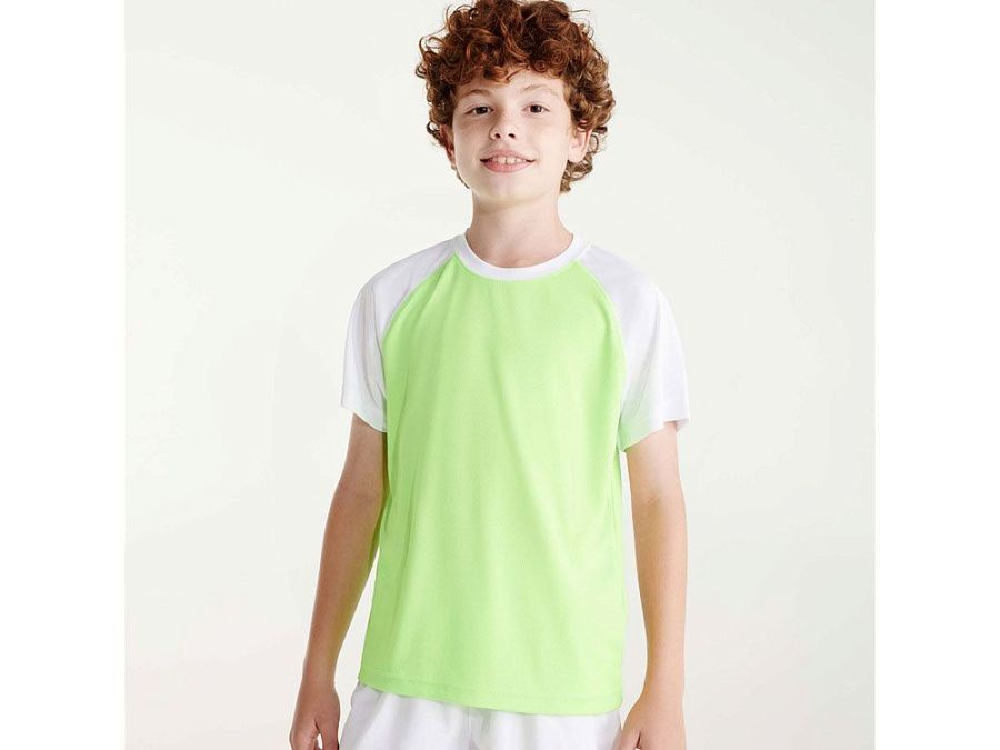 Спортивная футболка с контрастным рукавом реглан. Круглый вырез горловины с контрастной тесьмой. Технологическое дышащее полотно.