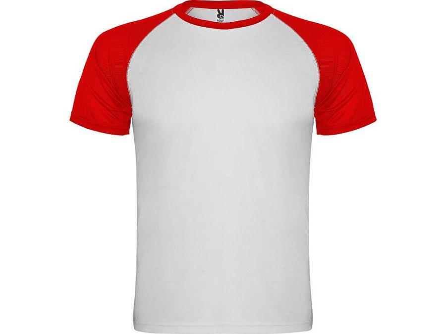 Спортивная футболка с контрастным рукавом реглан. Круглый вырез горловины с контрастной тесьмой. Технологическое дышащее полотно.