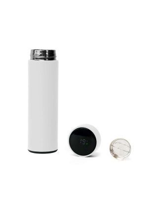 Термос из нержавеющей стали, покрытый цветным soft touch, с крышкой, в которой встроен термометр и LED дисплей, показывающий температуру внутри термоса. Объем: 500 мл. Упаковка: каждый термос в крафт коробке.