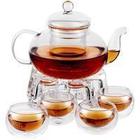 Создать атмосферу уюта и спокойствия дома или в офисе поможет чайный набор Teo. Изготовленный из боросиликатного стекла чайник позволит насладиться процессом раскрытия чайного листа во время заваривания и насыщенным цветом готового напитка. В подставке для подогрева предусмотрено место для чайной свечи, так что чай будет долго оставаться теплым.