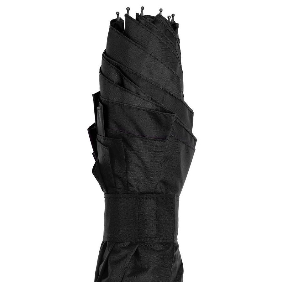 В закрытом положении зонт фиксируется хлястиком. Кнопка работает на фиксацию в открытом положении.