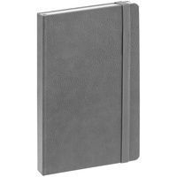 Ежедневник с твердой обложкой, выполнен из материала LaFite, серый СС, дополнен резинкой и ляссе в цвет обложки.