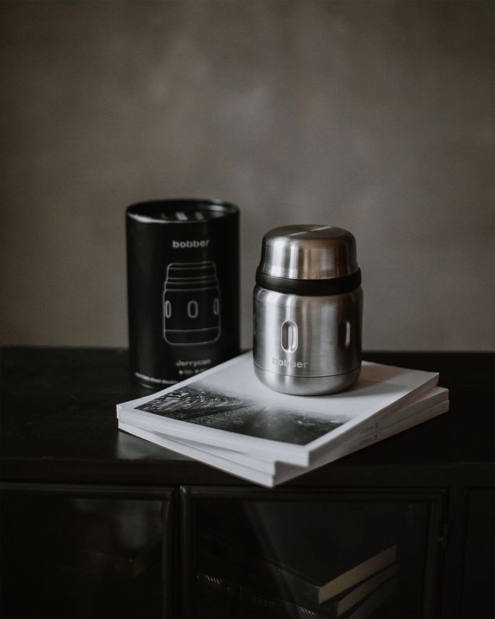 Стальной вакуумный термос для еды со складной ложкой. В нем любимые блюда не соприкасаются с пластиком и остаются горячими надолго.