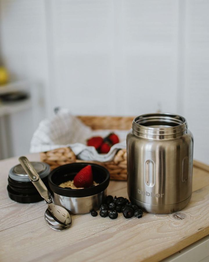 - Благодаря металлической вставке на пробке еда не контактирует с пластиком
