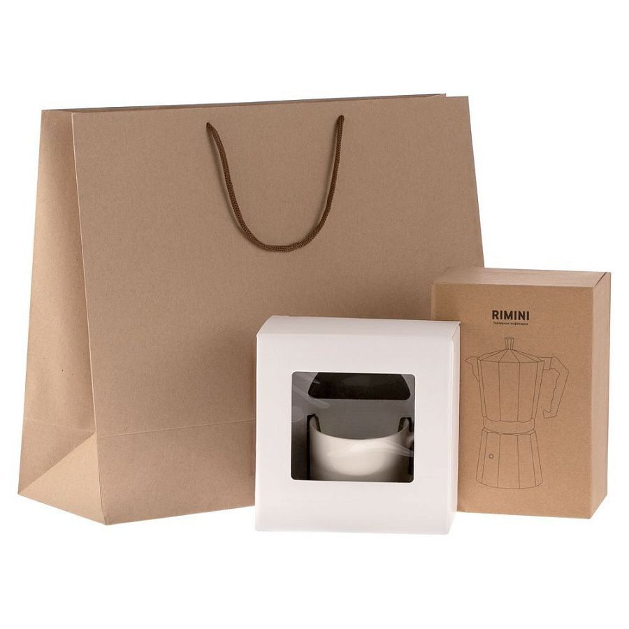 кофеварка: высота 19 см, диаметр 10 см, ширина с ручкой 17 см; чашка: диаметр 8,5 см, высота 6 см, ширина с ручкой 11,6 см; блюдце: 15,5x1 см; пакет: 42х34,5х15 см