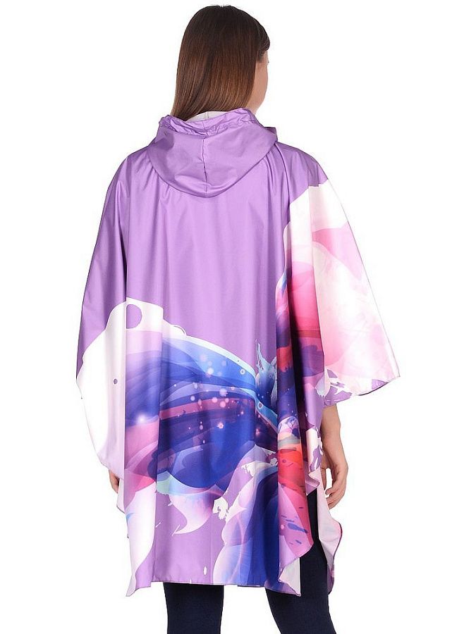 Легкий городской дождевик-пончо с регулируемым капюшоном из влагоустойчивого материала подходит для защиты в непогоду, свободно одевается поверх одежды и небольшого рюкзака.