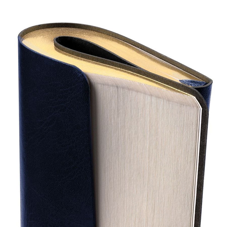Ежедневник с гибкой обложкой, выполнен из материала Nebraska, темно-синий ХХ, дополнен ляссе темно-синего цвета.