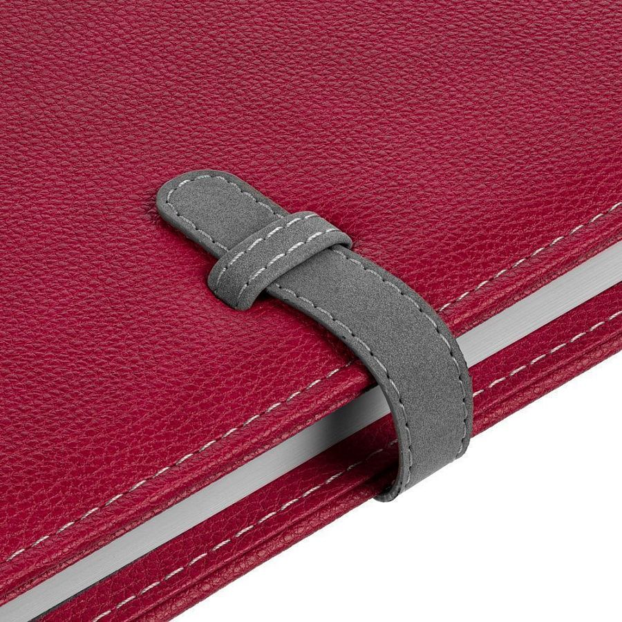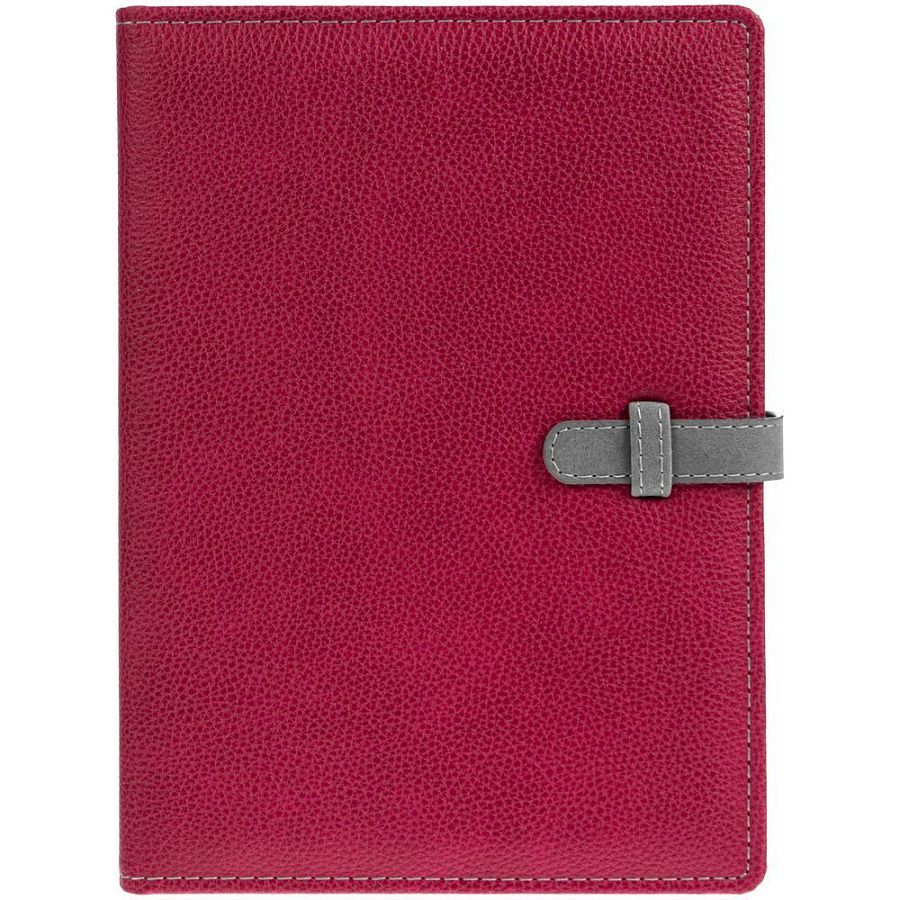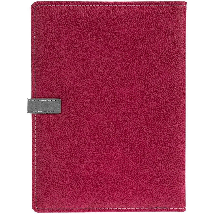 Ежедневник в мягкой суперобложке, выполнен из материала La Fite, малиновый LL, дополнен ляссе белого цвета.