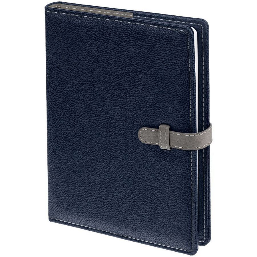 Изящный ежедневник в съемной суперобложке из искусственной кожи с хлястиком.