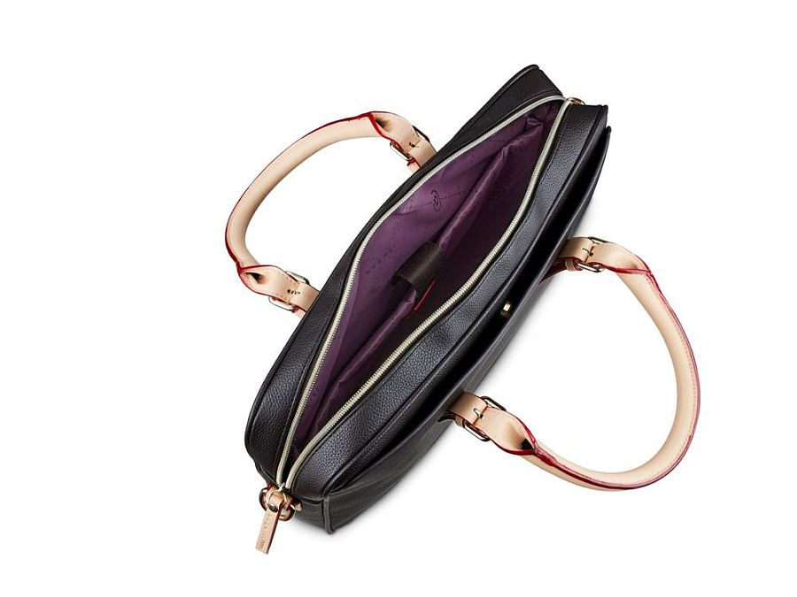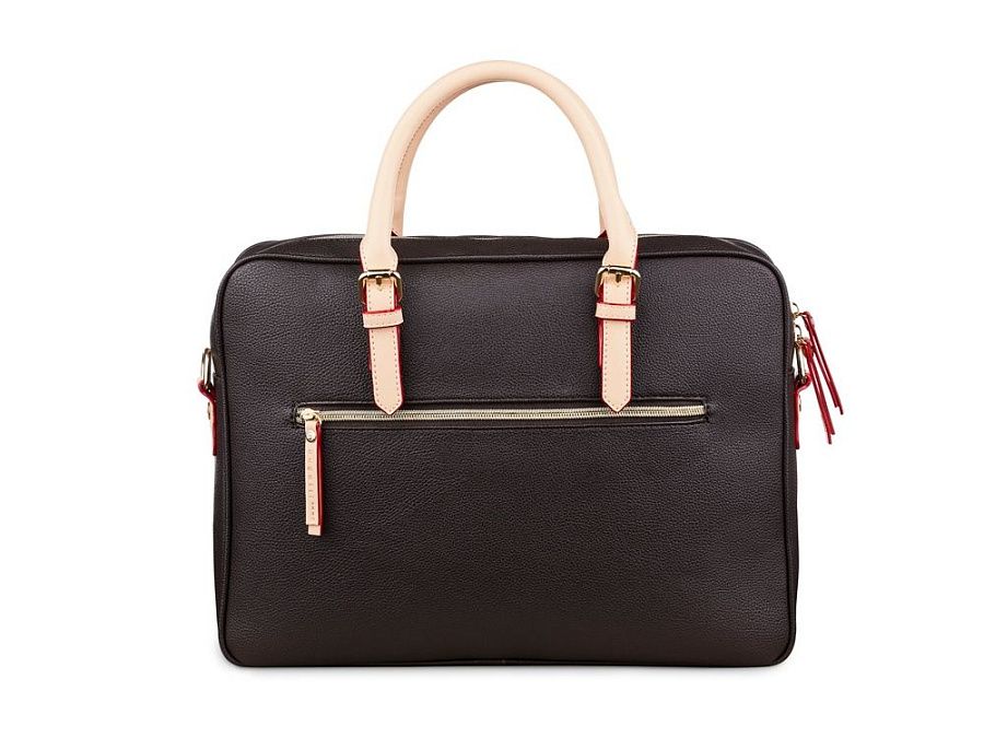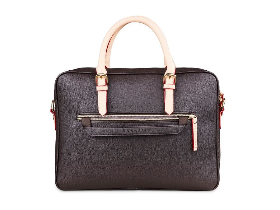 Внешняя организация: передний карман на магнитной кнопке, задний карман на молнии с ремнём для соединения с телескопической ручкой чемодана, ручки высотой 14 см, съёмный регулируемый плечевой ремень (до 130 см)