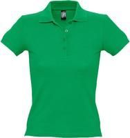 Рубашка поло женская Pasadena Women 200 с контрастной отделкой, черная с зеленым под нанесение